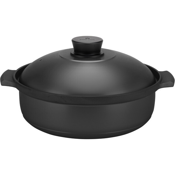 本体外側と蓋部は黒色セラミック塗装仕様、本体内部はお手入れしやすいテフロンプラチナ加工を施しています。