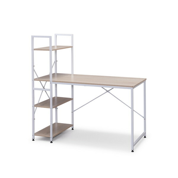 ★ 収納性抜群でリモートワークにも最適なラック付きデスクです。★ 4段階のラックにファイルや小物、Wi-Fiルーターなどを収納でき、デスクを有効に活用できます。★ 脚底にアジャスターがついているので、がたつきを防止します。★ 天板には耐水性・耐熱性に優れたパーティクルボードを使用、汚れてもさっと拭けるのでお手入れが簡単です。* 耐荷重:デスク天板:30kgf、 棚板:(1枚あたり)8kgf* 生産国:中国