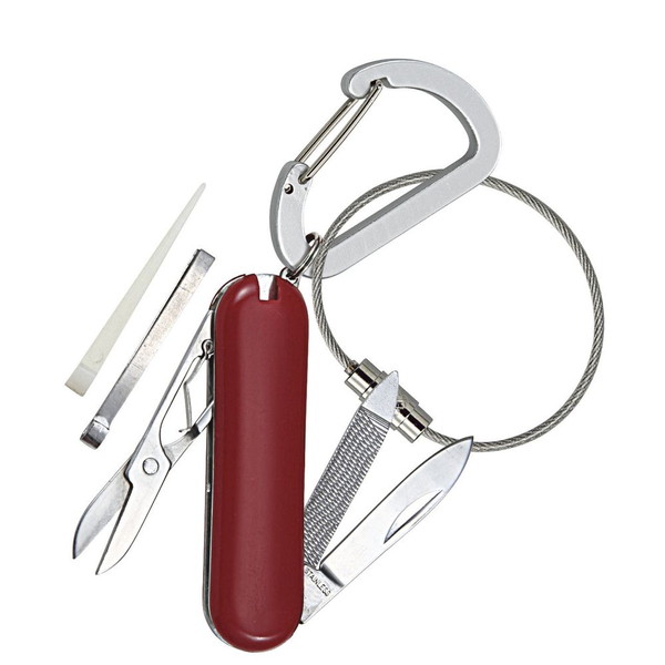 【用途】・キャンプ・アウトドア・防災【機能】・携帯に便利な多機能ツールです【仕様】・ワイヤーリング付・5徳ツール・ナイフ・はさみ・ヤスリ・つまようじ・ピンセット・ワイヤーリング* パッケージサイズ:70×200×12mm 50g* 材質:●本体:ステンレス ●ハンドルカバー:ABS樹脂 ●カラビナ:アルミニウム* 生産国:中国