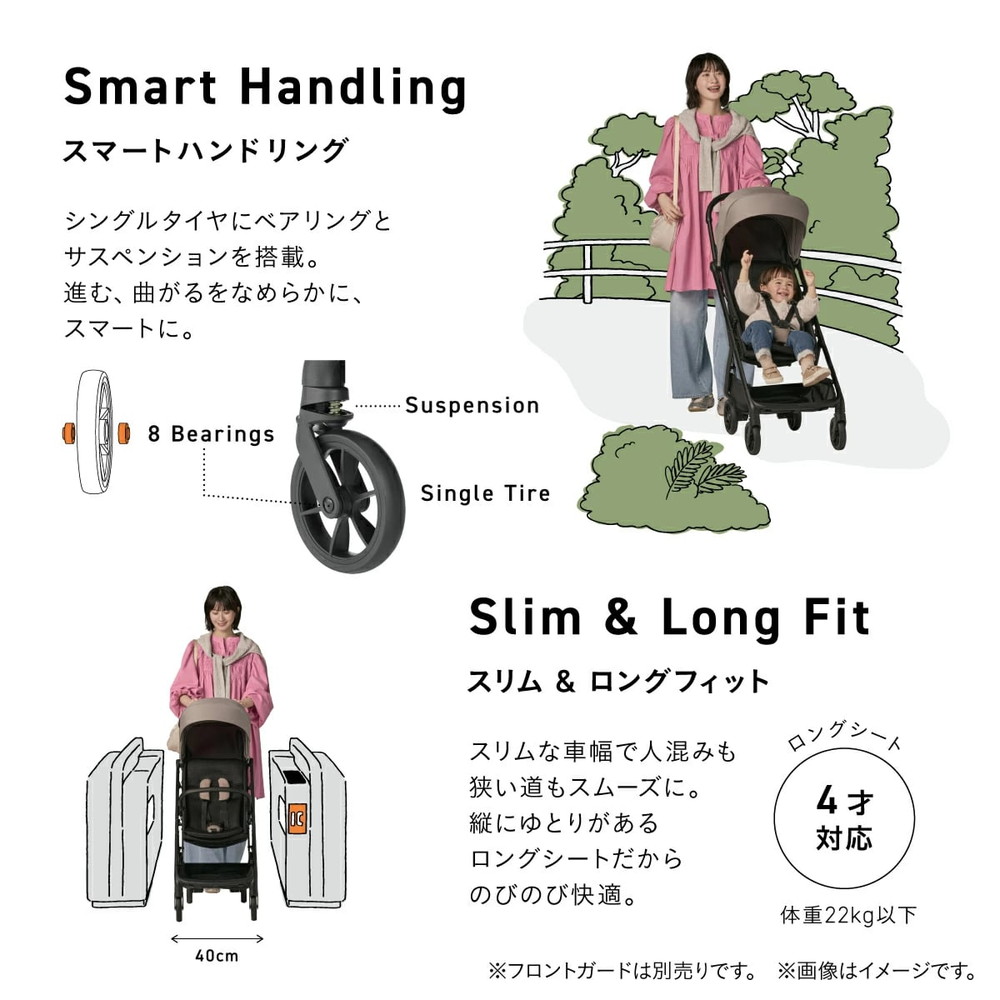 スマートな車幅で改札でも人混みでも、狭い路地でもスムーズに通れてどこへでも、自由に。