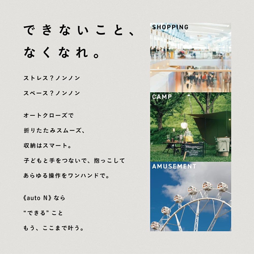 子供と手をつないだまま、片手でサッとたためて、スッと動けます。