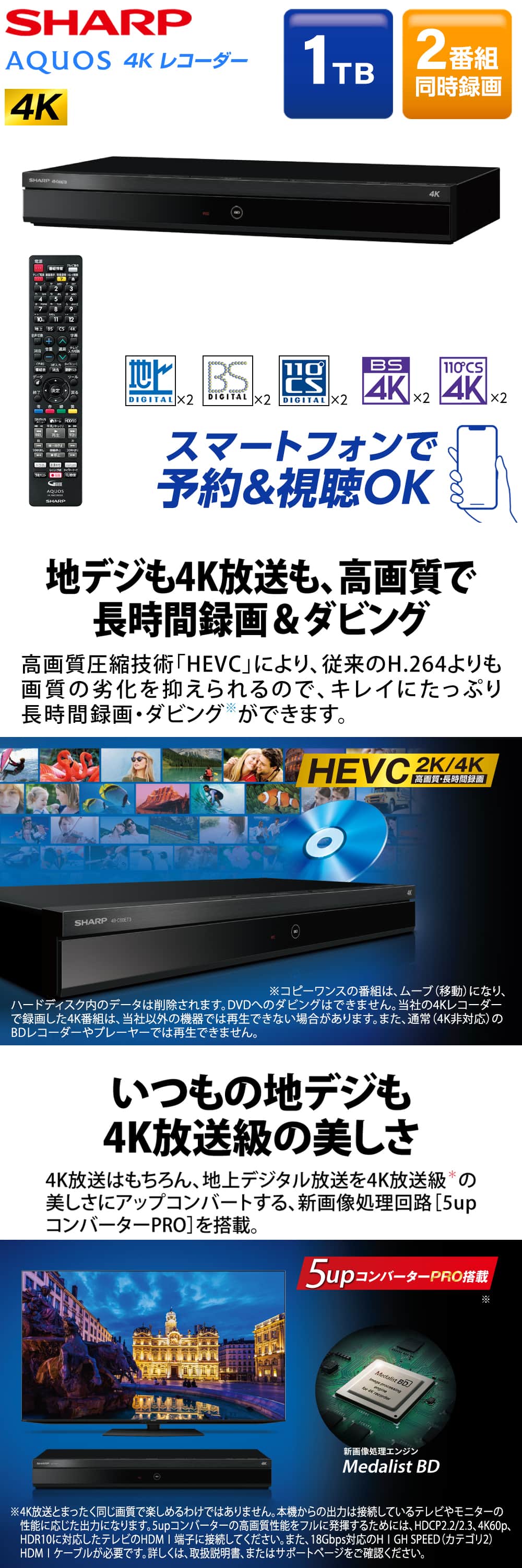 4Kに加えて2Kも「HEVC長時間録画」を実現。