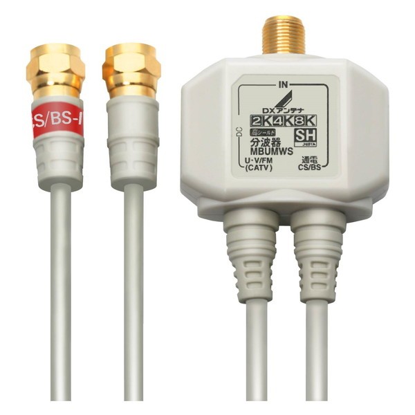 ★ 出力側ケーブル付全端子通電形2分波器。テレビの電波を2つに分けます。