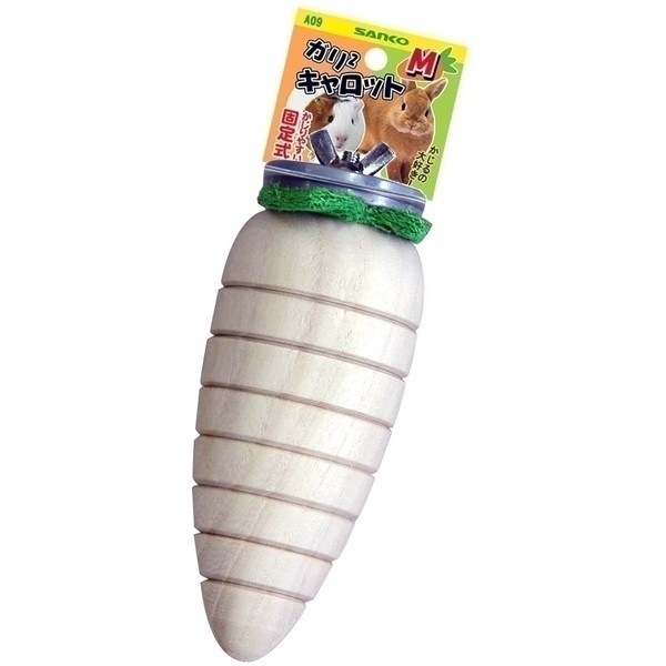 ニンジンモチーフが可愛い固定式かじり木 横に入った切り込みが齧りやすくとっても楽しい!【スペック】【材質】本体:天然木 葉:ヘチマ【原産国または製造地】中国