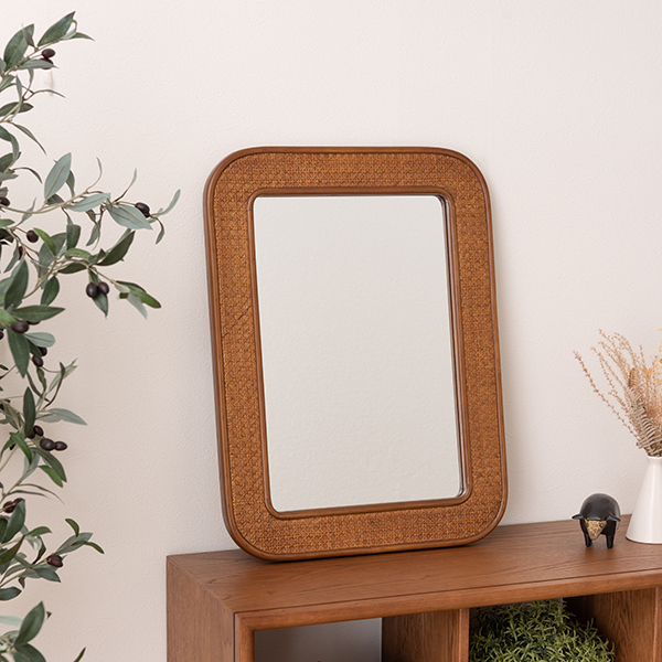 ★ フレームは、天然ラタンと天然木で縁取り。自然素材のぬくもりを感じるデザイン。