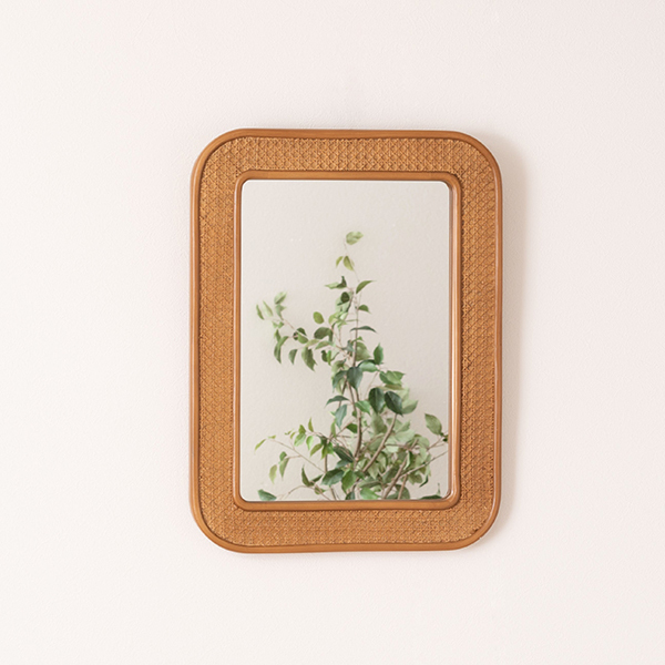 ★ カゴメ編みのラタンで縁取られたミラー。