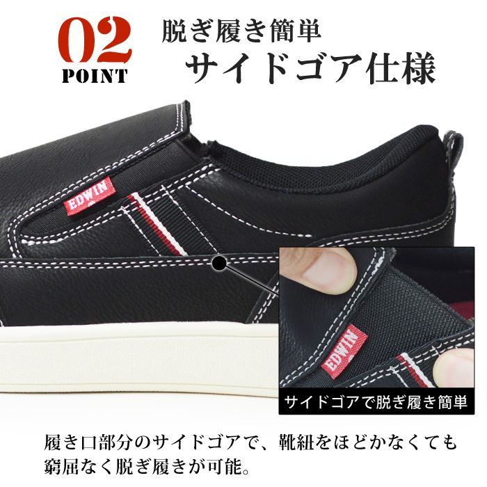 EDWIN エドウィン スリッポン メンズ スニーカー 軽量 カジュアルシューズ ローカット サイドゴア カップインソール 防滑 メンズシューズ 紳士靴 靴