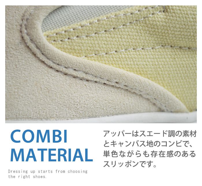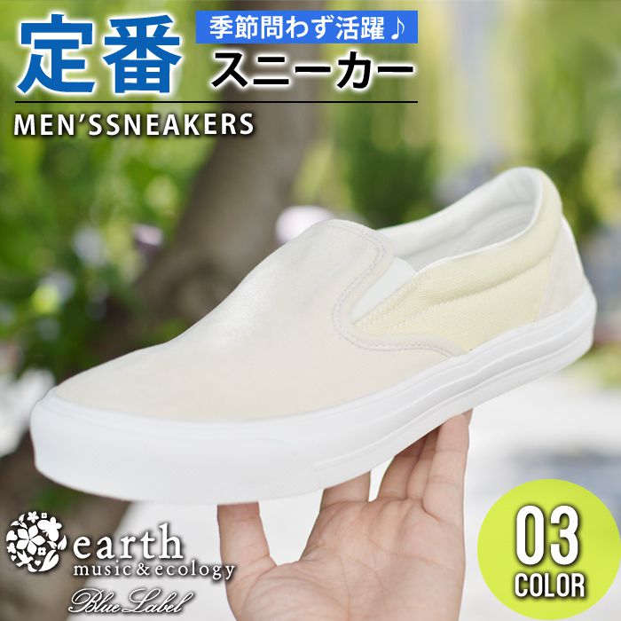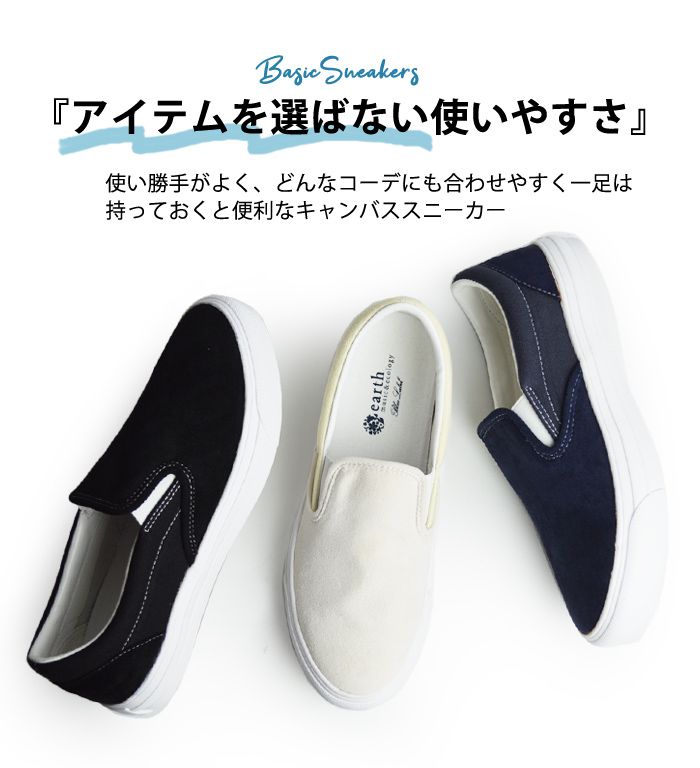 【earth music&ecology bluelabel】より、コンビ素材のスリッポンスニーカーが入荷しました。