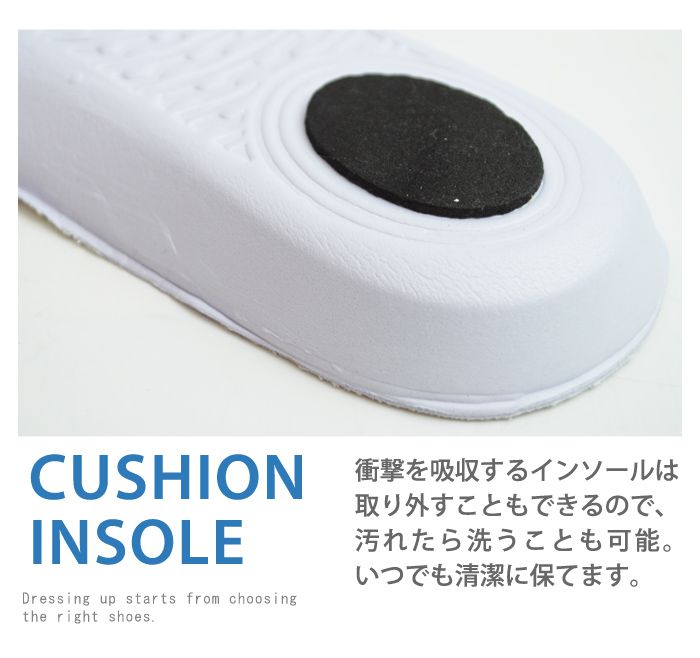 衝撃を吸収するインソールは取外す事もできるので汚れたら洗うことも可能。