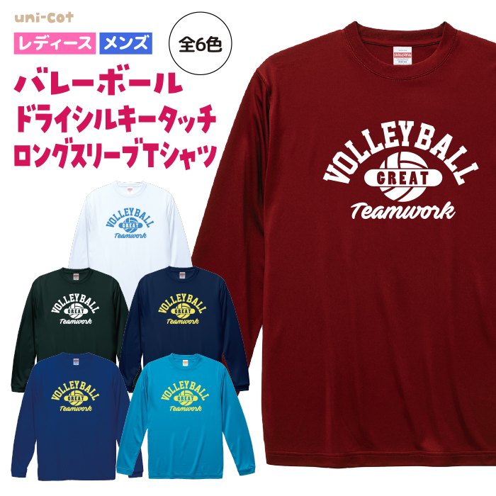 バレーボール ドライシルキータッチ ロングスリーブ Tシャツ ウェア 長袖 練習着 チーム クラブ 部活 キッズ レディース メンズ 全6色 V212 5089