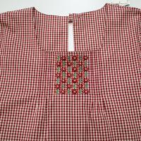 マタノアツコ エプロン ブランド Atsuko Matano 割烹着(レッド)花が咲いたよ ギンガムチェック