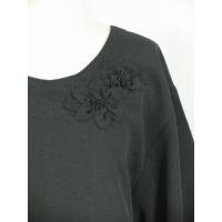 エプロン 日本製 かっぽう着 黒 ちりめん Lサイズ 花モチーフ 裾・ポケットフリル 母 女性 レディース 上品 40代 50代 60代 70代 枚数限定特別価格