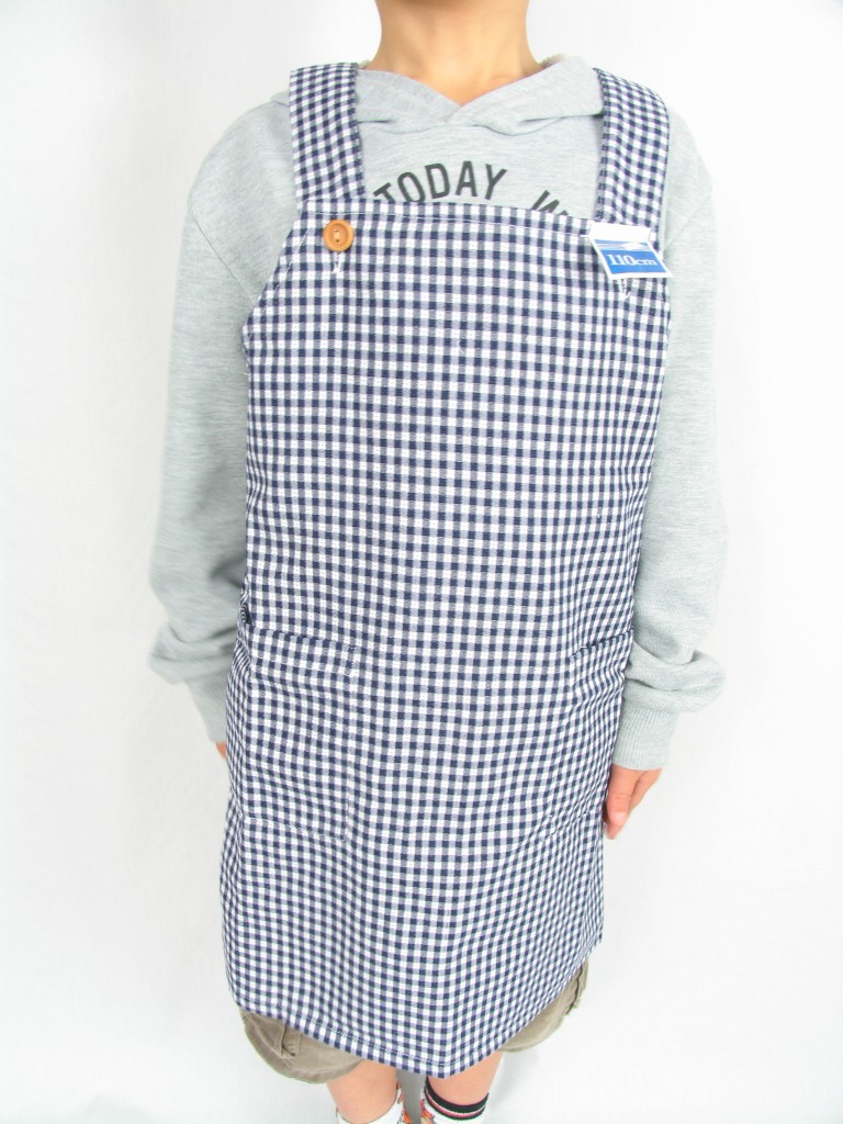 在庫限り 子供エプロン パナマ格子 チェック 青・赤 110cm