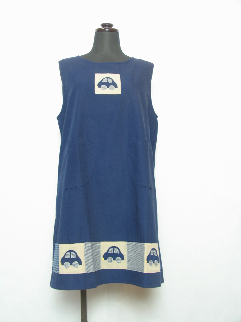 ラン型/袖なし/和/和調/車/青/ブルー/ネイビー