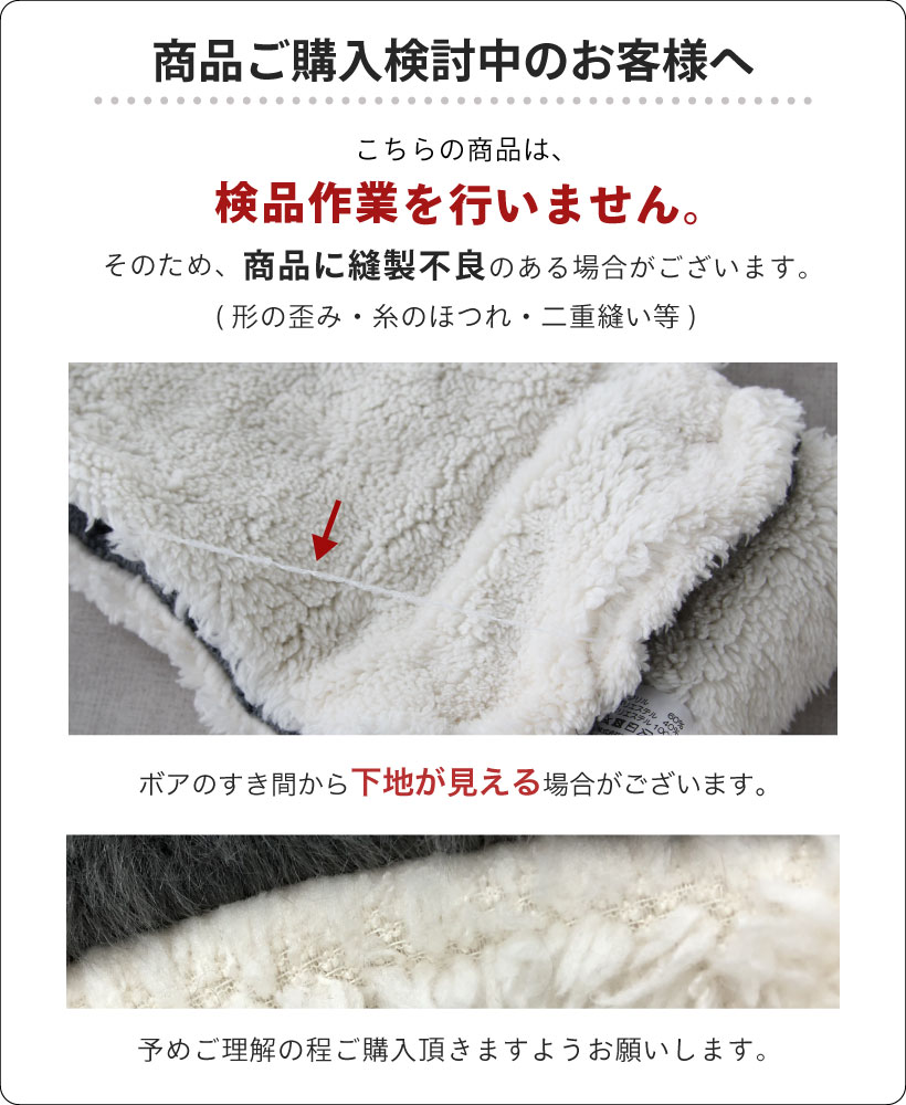 ●繊維の構造上、手でひっぱったり、使用中の摩擦等により繊維が抜けやすくなりますので、お取り扱いには十分ご注意ください。