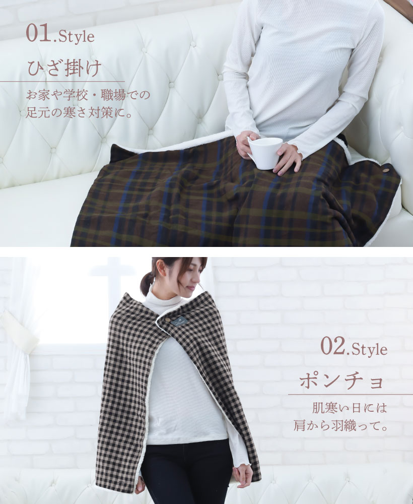 くつろぎ時間から作業時まで幅広く活用できる4wayブランケットです。ひざ掛けはもちろん、ポンチョ・巻きスカート・ボレロの4通りの使い方が可能!裏はずっと触れていたくなる暖かボア。ちょうどいいサイズ感なので、お家はもちろん学校や職場にもオススメです◎