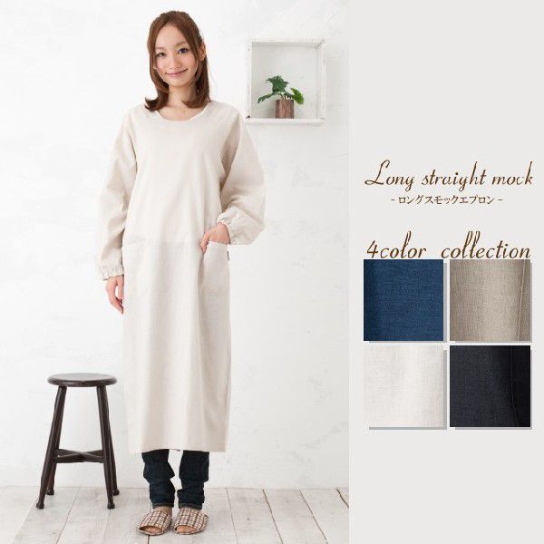 ロングストレート割烹着 日本製 かっぽう着 スモック エプロン 綿麻 プレゼント ギフト 母の日【メール便1枚のみ送料無料】【N】【M】