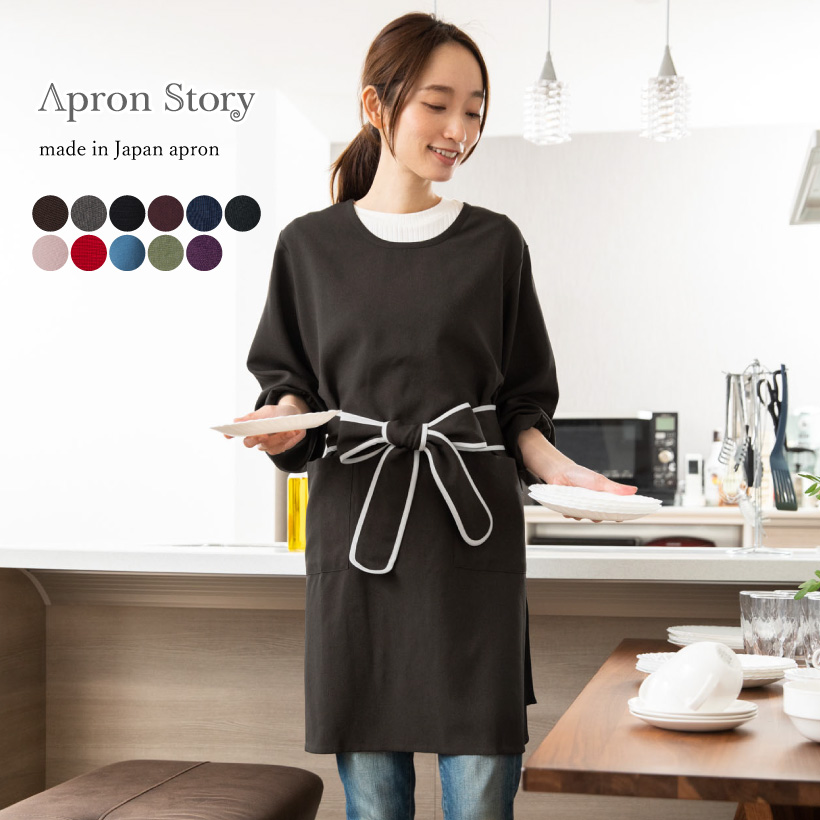 日本製 割烹着 かっぽうぎ スモック おしゃれ 女性 レディース 家事 キッチン 料理 エプロン 秋 冬 ギフト プレゼント きれい かわいい 制服 ユニフォーム 黒 紺 グレー 無地 赤 ピンク ネイビー ブラウン ワイン レッド インディゴ グリーン パープル リボン