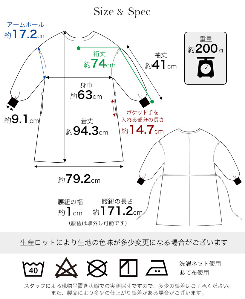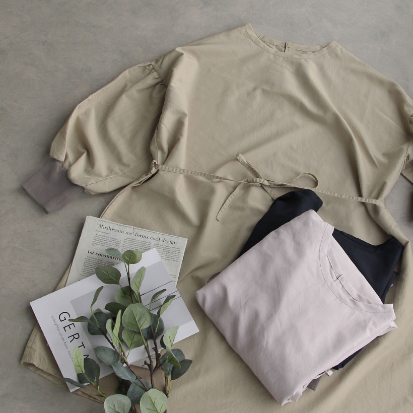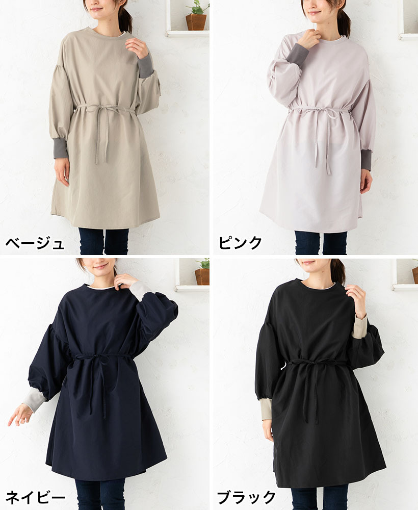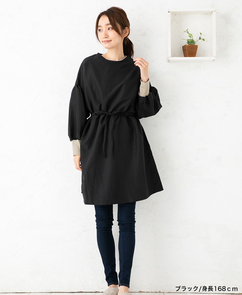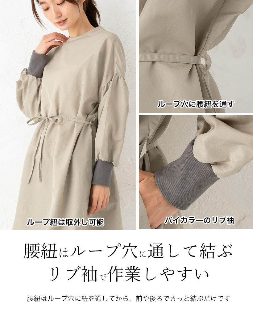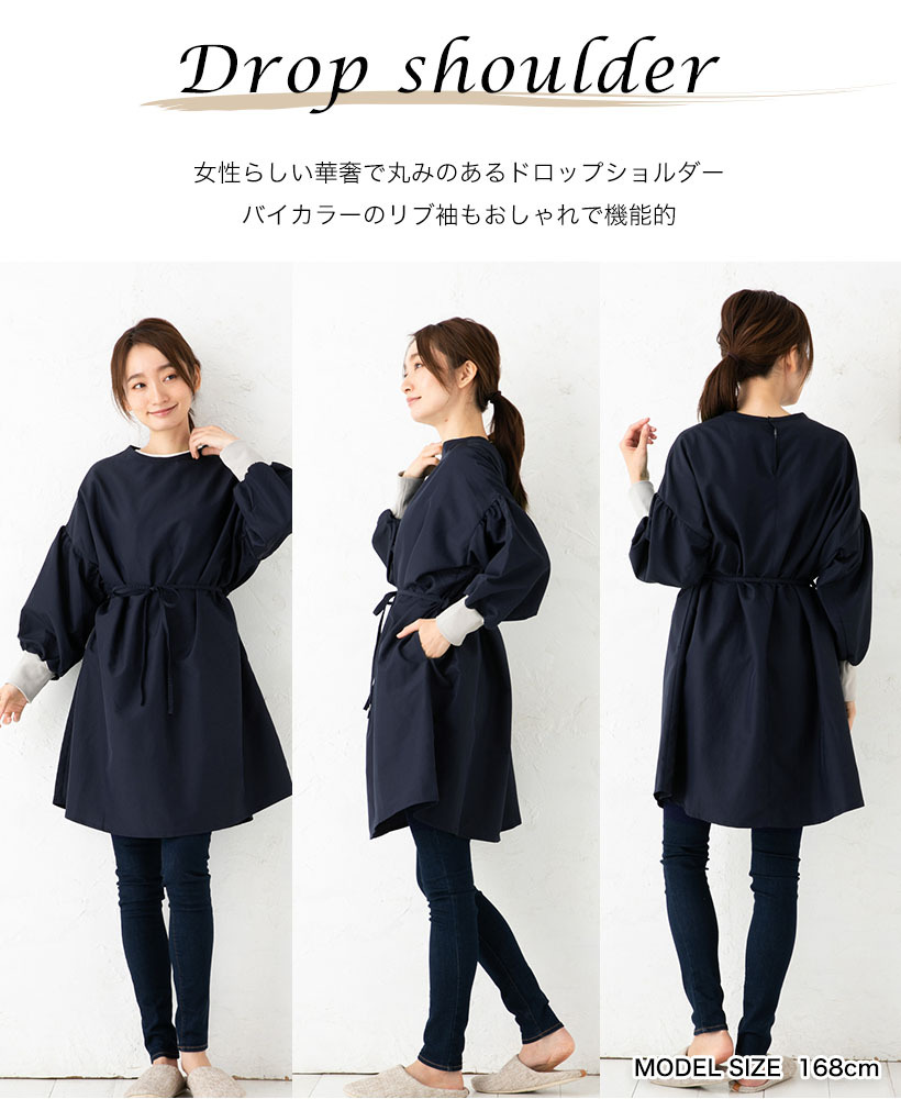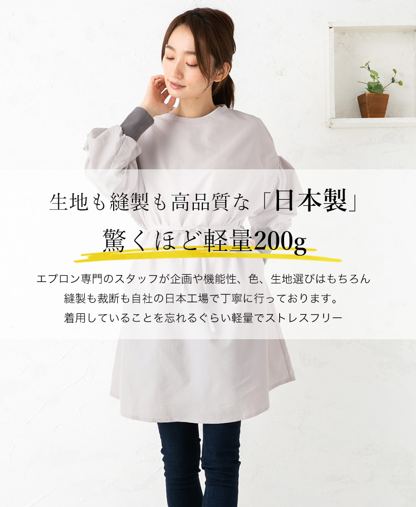 安心の日本製!3WAYで使えるドロップショルダー割烹着。さらっとした撥水加工のタフタ素材。