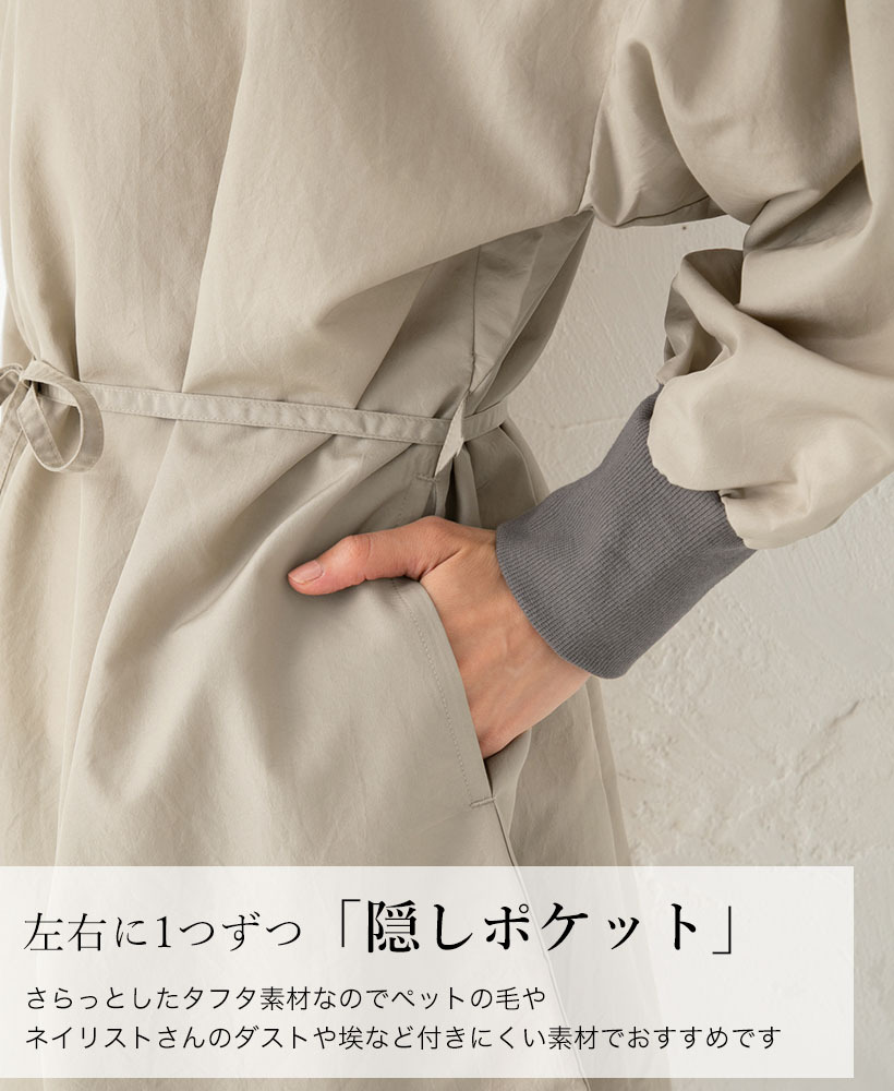 ドロップショルダー割烹着 日本製 撥水加工 軽量 タフタ サロン トリミング かわいい おしゃれ プレゼント ギフト【メール便1枚のみ送料無料】【N】【M】