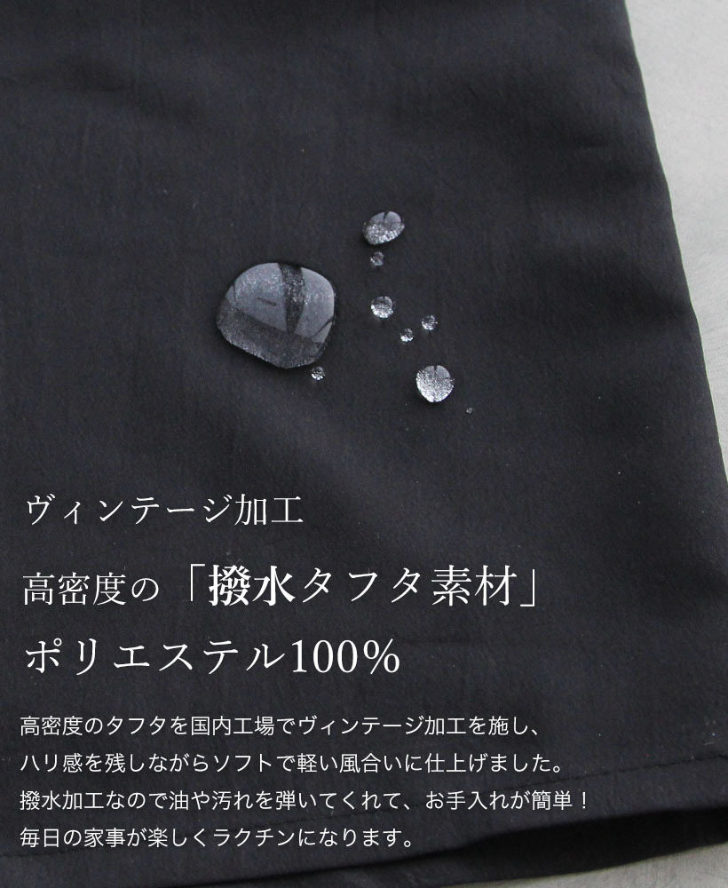 日本製 割烹着 撥水 軽量 軽い サロンワーク 美容師 ペットサロン ネイリスト エステサロン リブ袖 体型カバー おしゃれ 女性 レディース 家事 キッチン 料理 エプロン ギフト プレゼント きれい かわいい サロン カフェ ユニフォーム 制服 ゆったり 無地 黒 ブラック タフタ