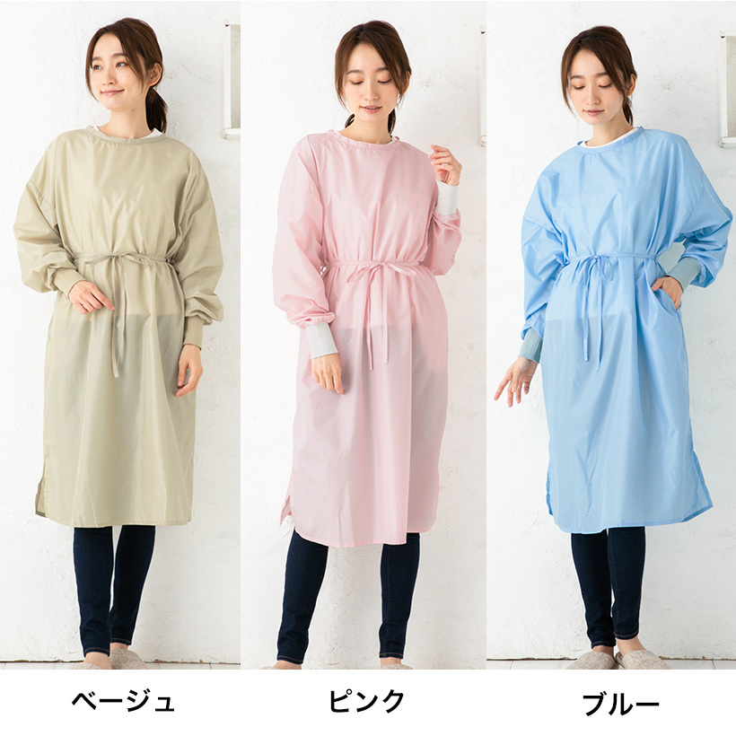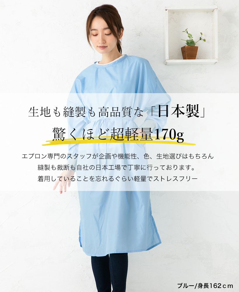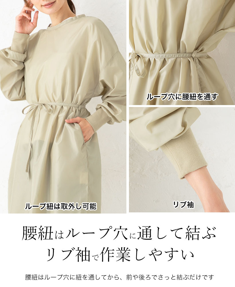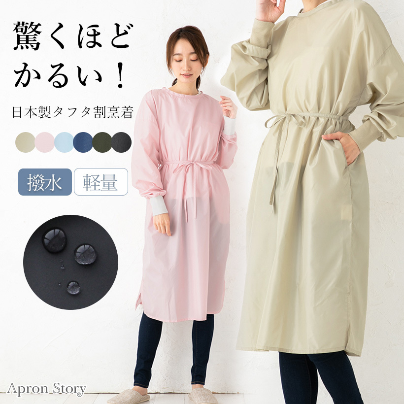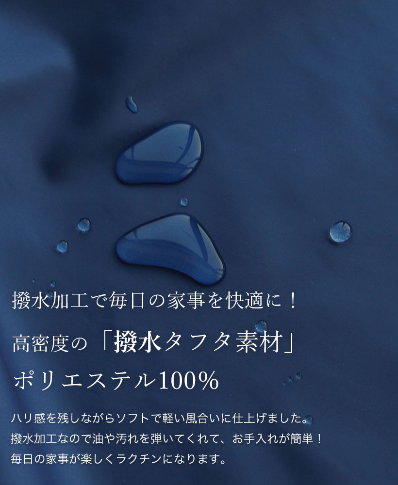 安心の日本製!3WAYで使えるタフタ割烹着。さらっとした撥水加工のタフタ素材。