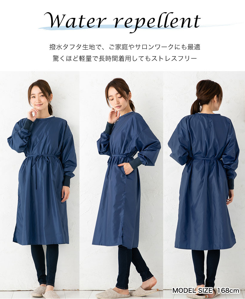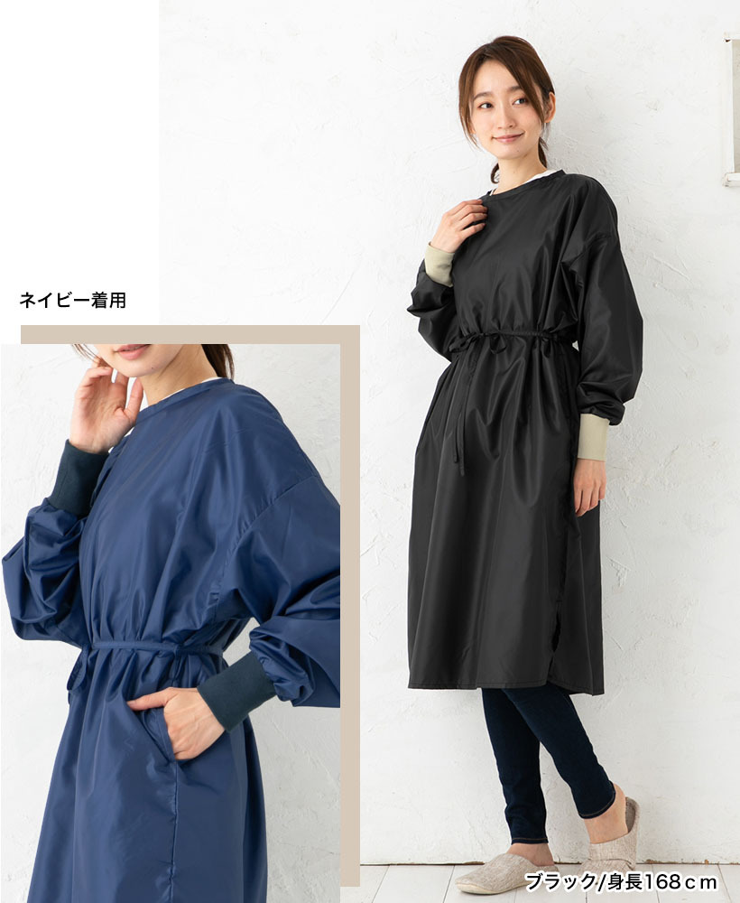 日本製 割烹着 撥水 軽量 軽い サロンワーク 美容師 ペットサロン ネイリスト エステサロン リブ袖 体型カバー おしゃれ 女性 レディース 家事 キッチン 料理 エプロン ギフト プレゼント きれい かわいい サロン カフェ ユニフォーム 制服 ゆったり 無地 黒 ブラック タフタ
