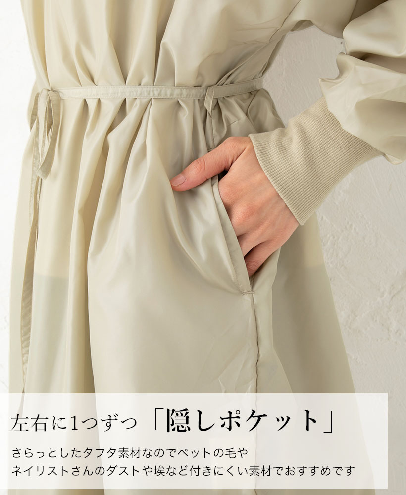タフタ割烹着 日本製 超軽量 撥水 サロン トリミング かわいい おしゃれ プレゼント ギフト【メール便1枚のみ送料無料】【N】【M】