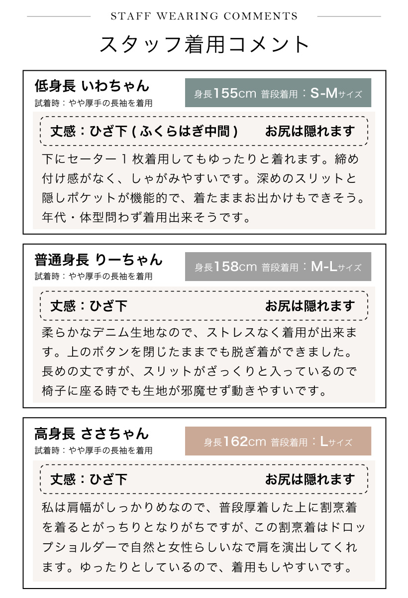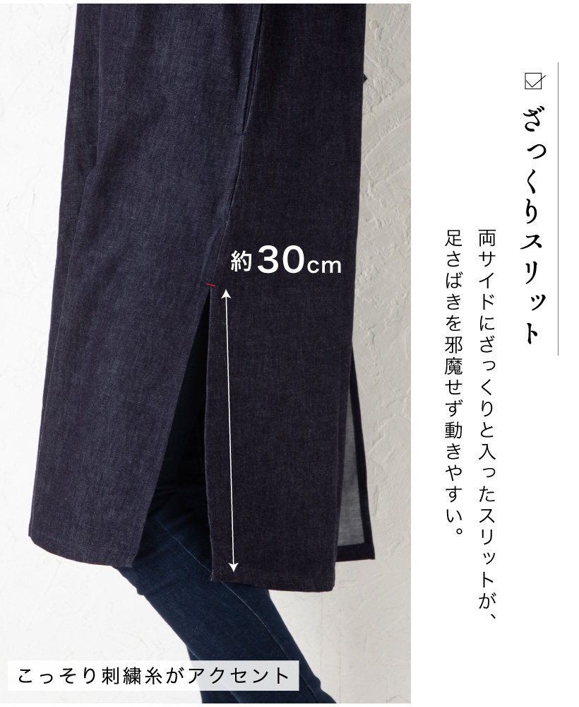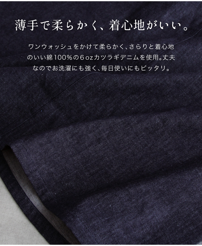着心地のいい 柔らかワンウォッシュデニム割ぽう着!ざっくりサイドスリットでロング丈でも動きやすい、袖口シャーリングが大人かわいい割ぽう着。デザインやサイズ感にこだわった、丁寧な作りの日本製エプロン。 工場直営のエプロン専門店 エプロンストーリー ならではの高品質エプロンは、ギフトやプレゼントにも最適です。