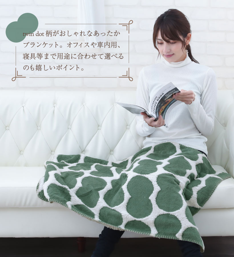 ブランケット ひざ掛け 肩掛け 秋 冬 防寒 寒さ対策 あったか 暖か ふわふわ ふんわり もこもこ ボア オフィス お家時間 リラックス ドット柄 ツインドット柄 twindot柄 グレー イエロー グリーン gaf6601 GAF6601