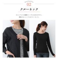 インナーとしてデイリーに使いやすいシンプルなクルーネックの長袖カットソー。襟や胸元からちらっと見せる重ね着コーデに◎。柔らかくて肌になじみ、シワになりにくいのも嬉しいポイントです。