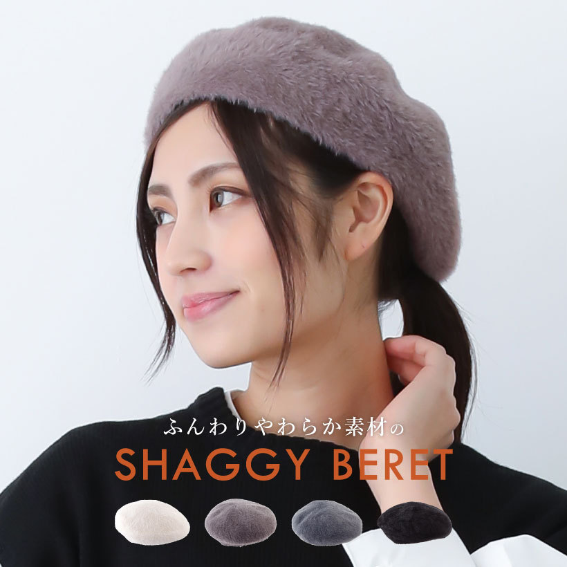 ふんわり柔らかな素材のシャギーベレー。カラーも柔らかな色合いで揃えているので、様々なコーディネートにマッチします◎