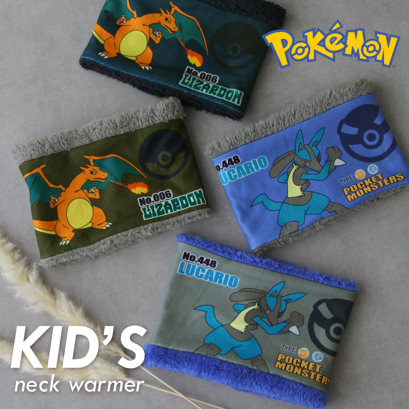 ポケモンキッズネックウォーマー【こども用】リザードン ルカリオ ふわふわ かっこいい Pomekon 通園 通学 プレゼント【メール便1枚のみ送料無料】【N】【M】