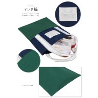 インド綿のしっかりしたキャンバス素材のシューズバック♪ シンプルなデザインに、おしゃれなタグと持ち手がアクセントに♪