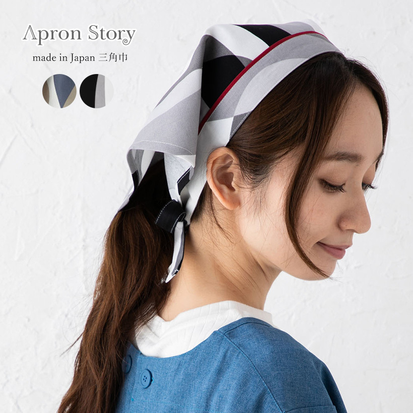 日本製 綿 三角巾 おしゃれ 女性 レディース 家事 キッチン 料理 ギフト プレゼント きれい かわいい 北欧 母の日 黒 紺