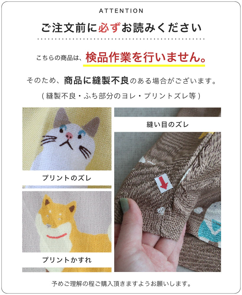 ●アイロンを直接あてることや、スチームアイロンのご使用はお避け下さい。アイロンをかける場合は、あて布をし、裏からかけて下さい。