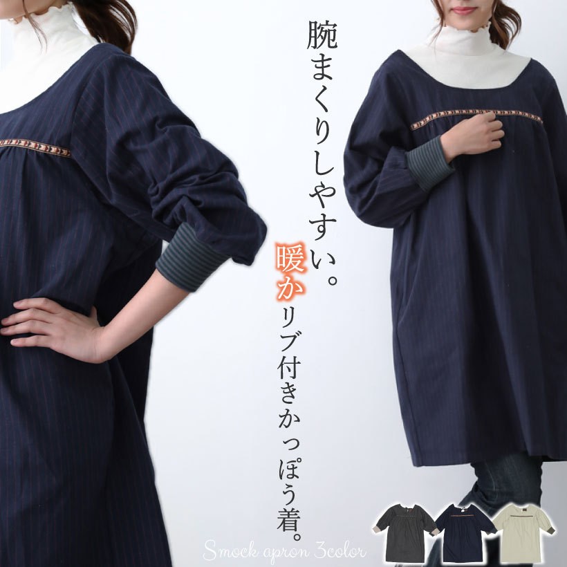 花びらかっぽうぎ 綿 綿麻 カッポウギ 長袖 秋冬 割烹着 中厚手おしゃれ かわいい 無地 プレゼント【メール便1枚のみ送料無料】【N】【M】