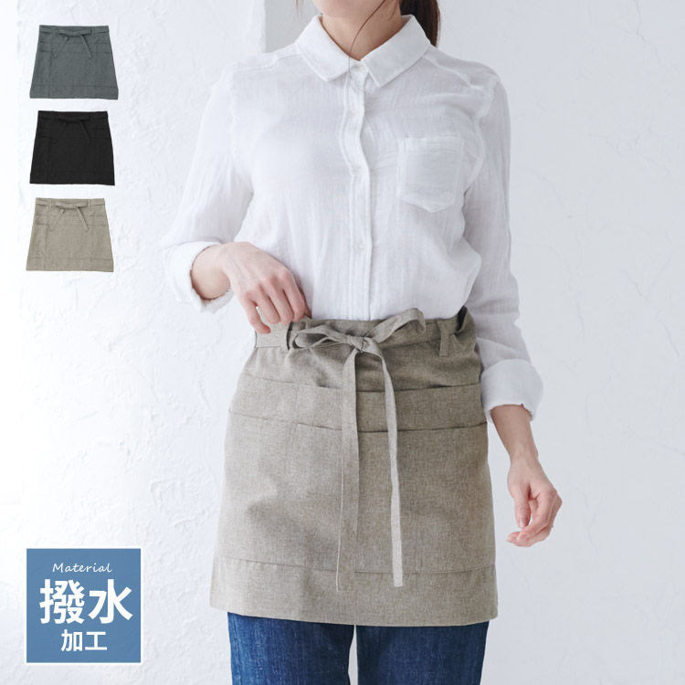 撥水加工腰巻きエプロン ショート丈 エプロン 腰巻 ギャルソン サロンエプロン 無地 かわいい 前掛け 可愛い 料理 ギフト プレゼント カフェエプロン エプロン