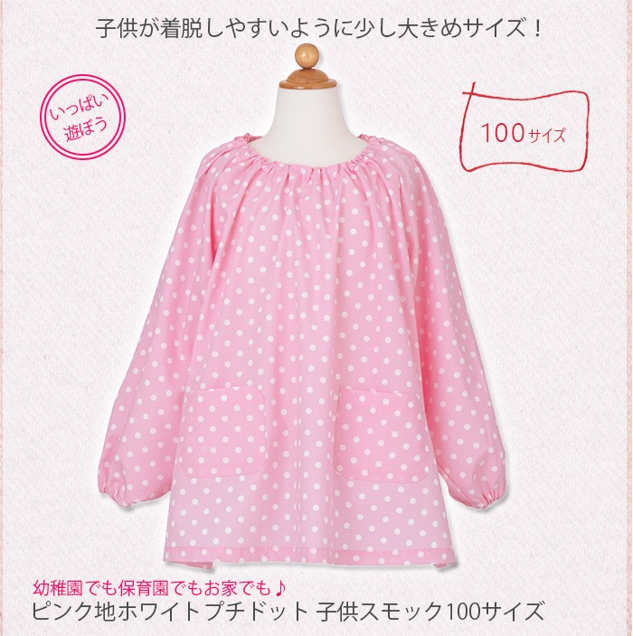 ピンク地に白の小さいドットがかわいい女の子用スモックです。
