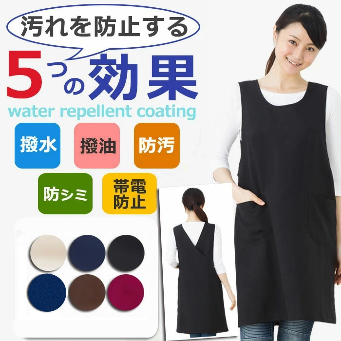 はっ水、防汚、防シミ、静電気抑制、撥油の効果がある特殊生地を使用したエプロンです!