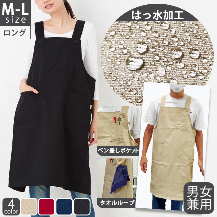 エプロン 撥水 加工 シンプル ワーク エプロン ロング M-L H型 ntl01 保育士 業務用 はっ水加工 介護 メンズ レディース シワになりにくい