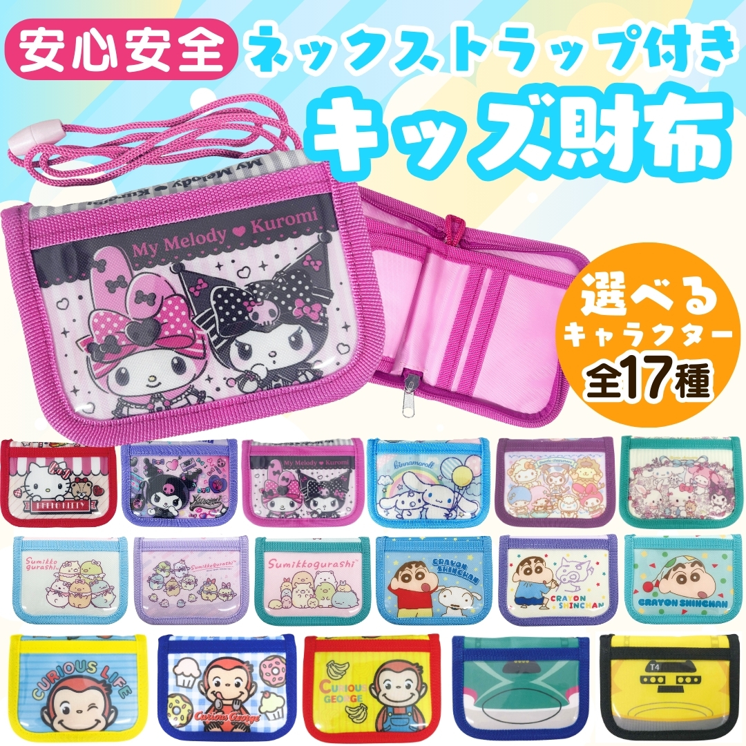 キャラクター 首かけ紐付き 財布 コンパクト 二つ折り 子供 男の子 女の子 サンリオ すみっコぐらし クレヨンしんちゃん おさるのジョージ