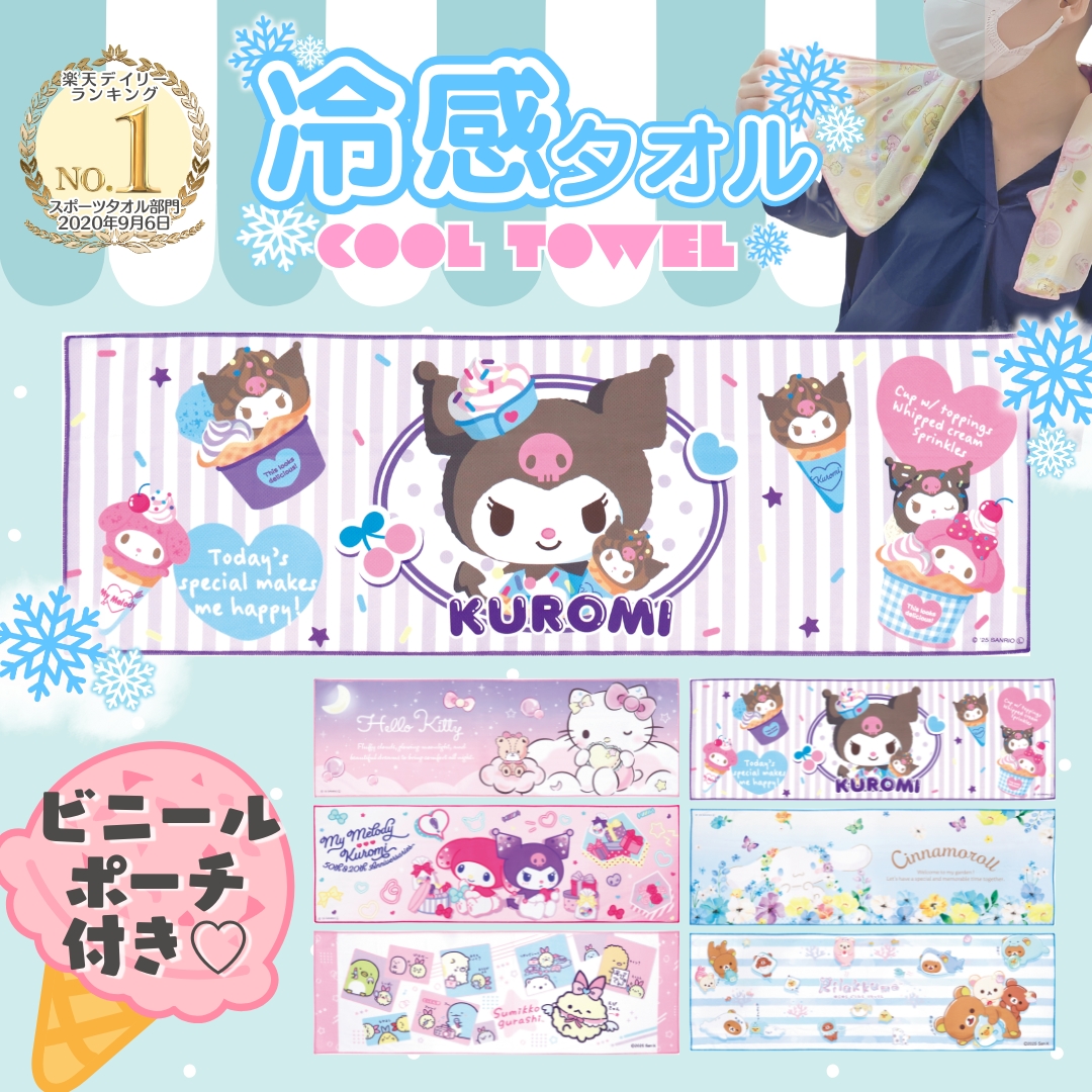 キャラクター ひんやり 冷感 クールタオル ケース 付き 90×30cm 冷却 タオル キッズ 子供 アイスタオル すみっコぐらし 熱中症対策 冷たい 薄手 夏 可愛い