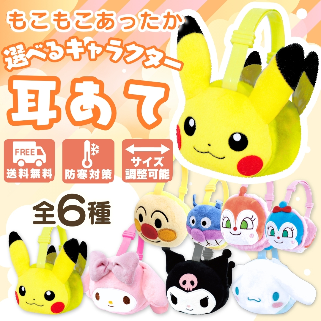 キャラクター もこもこ 耳当て キッズ 子供 全6種類 ポケモン アンパンマン 男の子 女の子 おしゃれ かわいい 可愛い 冬用 みみあて 防寒 防風 ピカチュウ