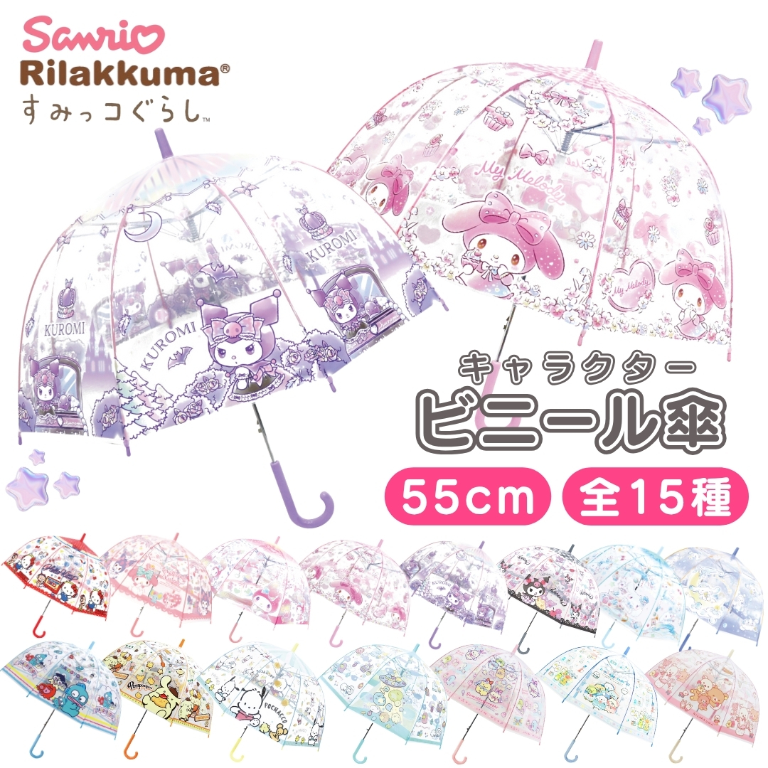 キャラクター ドーム型 ビニール 傘 子供 キッズ 55cm 8本骨 サンリオ すみっコぐらし 男の子 女の子 可愛い クロミ シナモロール