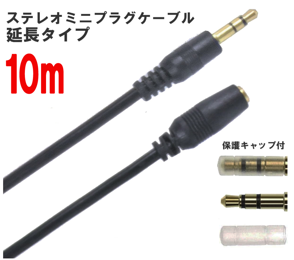 ANE ステレオミニ延長ケーブル 1000cm(10m) ブラック 高品質シリコンゴム やわらか極太 コード径約3.8mm 3極 AUX オーディオケーブル