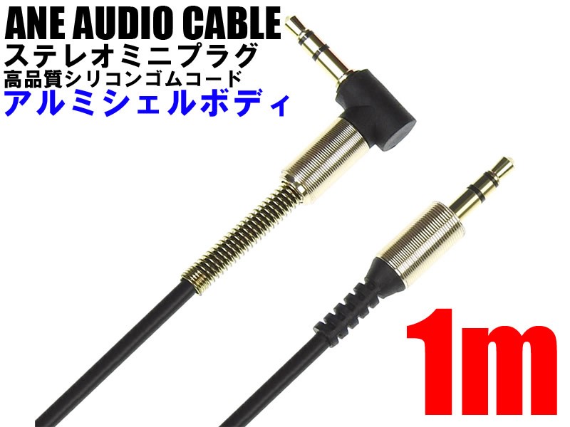 ANE オーディオケーブル : ブラック直型+L型 100cm 金メッキ端子(キャップ付):ステレオミニプラグ (3.5Фプラグ径3.5mm 3極 ) (A-CABLE-LS100)