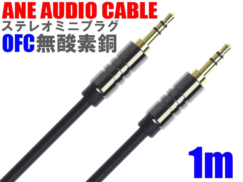 ANE ステレオミニプラグケーブル 無酸素銅 1m 金メッキ端子 高品質ケーブル 高音質 [オスオス] コード径約4mm 3極 AUX オーディオケーブル