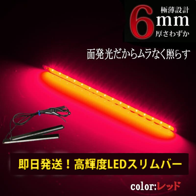 COBハーフデイライト 汎用 2本セット 高輝度 レッド LEDスリムバー DAY-T13R
