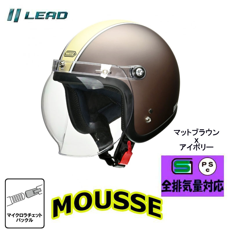 品名 リード工業 シールド付 スモールジェットヘルメット MOUSSE(ムース) マットブラウンアイボリー フリーサイズ